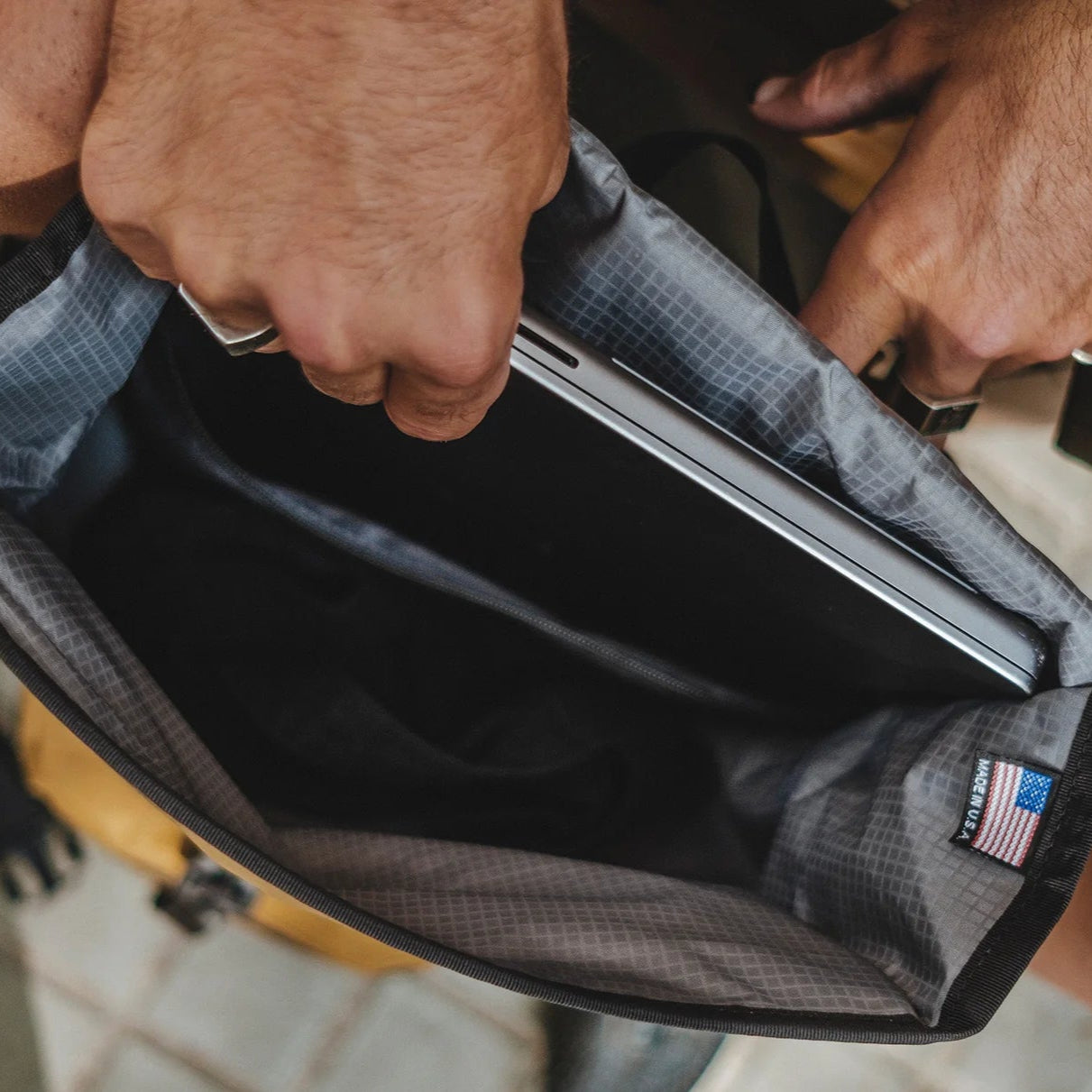 The main cargo space has plenty of room plus a padded and zippered waterproof laptop compartment that fits up to 16 MacBooks. The flap is secured with a magnetic Fidlock closure for fast and dependable access and features an adjustable position hip belt. chest straps. and a built-in light loop.