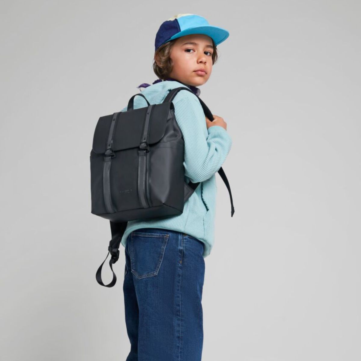 This Spläsh mini is sized down for a more compact. lightweight feel that works just as well for kids as it does adults. Made from recycled materials. its signature double strap closure is finished with reflective material to give you added visibility in low light conditions. It is finished with three outer pockets and an inner water bottle pocket.