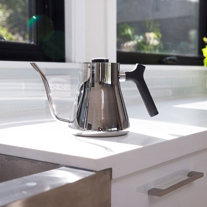 Back that mass up. Stagg’s weighted handle shifts the center of mass closer to your hand for an easier pour.