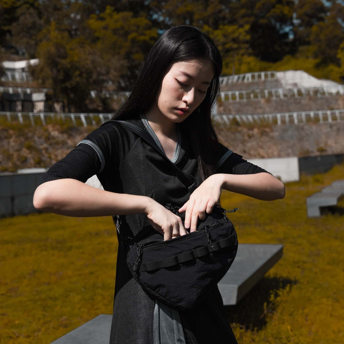 This is a collaboration piece with HONG KONG’s West Kowloon Cultural District – M Plus Museum. showcasing Architect Gary Cheng’s vision. The vest offers a one-of-a-kind design. seamlessly blending the functionality of a shoulder bag with the versatility of a tactical vest. Swap it effortlessly to suit various needs and occasions.