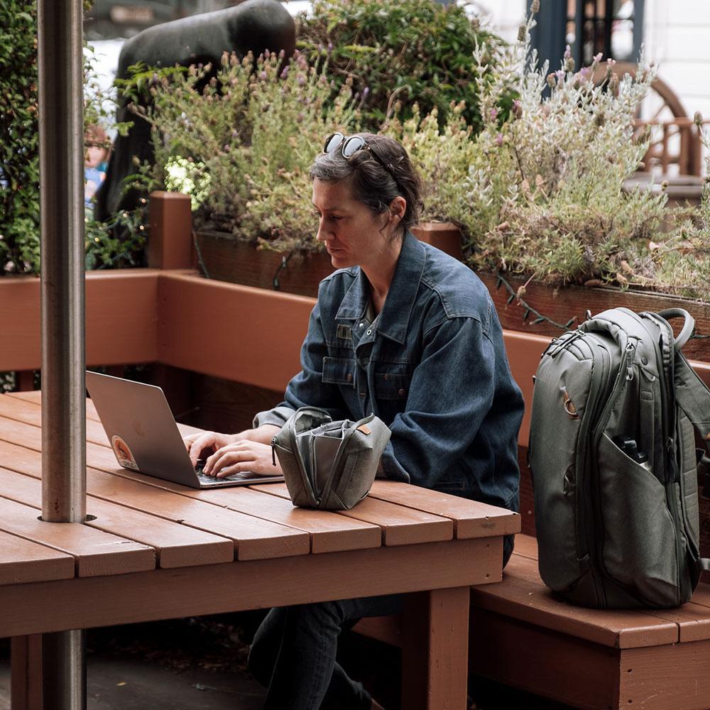 Smaller accessory pockets to store pens. SD cards. batteries. and more. External passport and document pocket included. SYNCS WITH GEAR Anchor attachment points connect to Peak Design straps. sold separately.