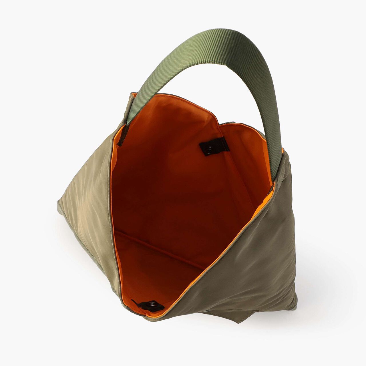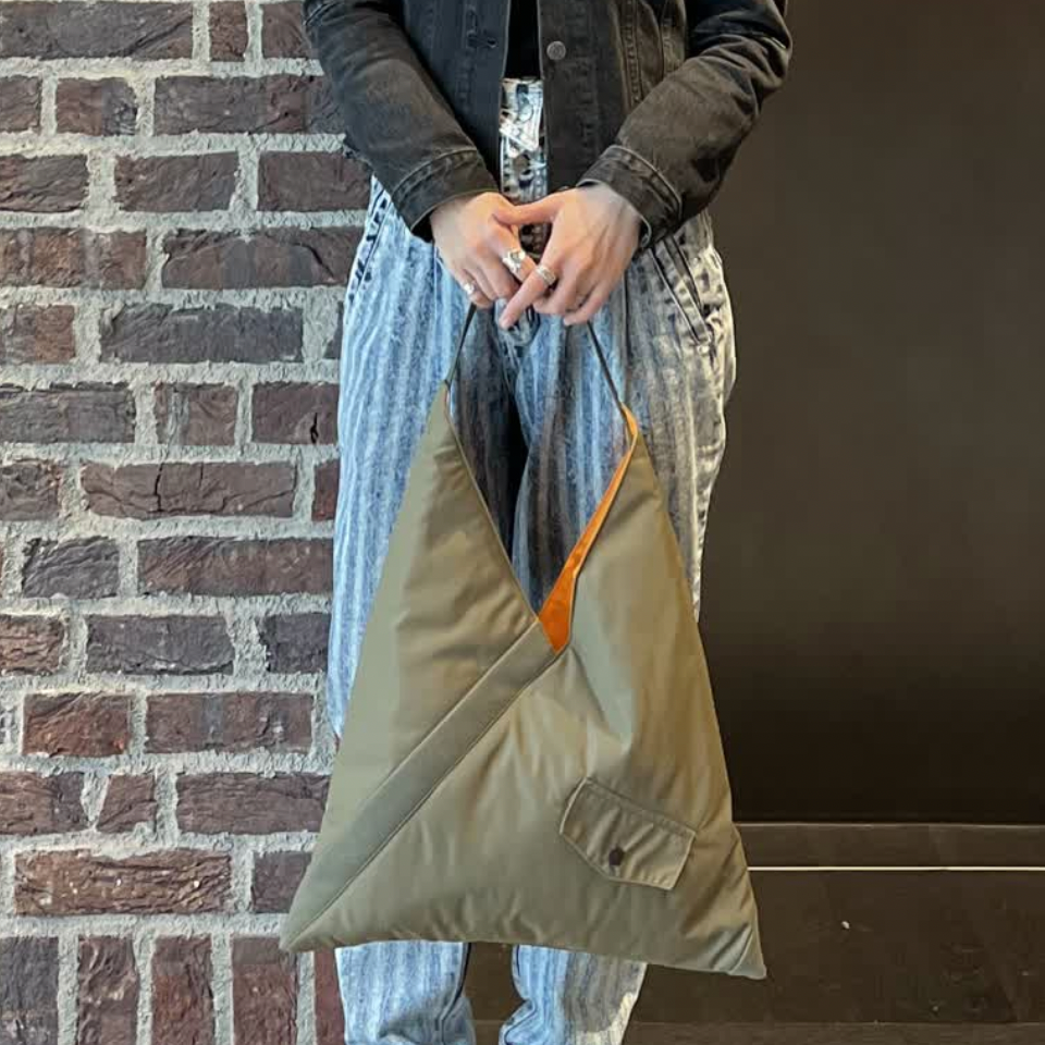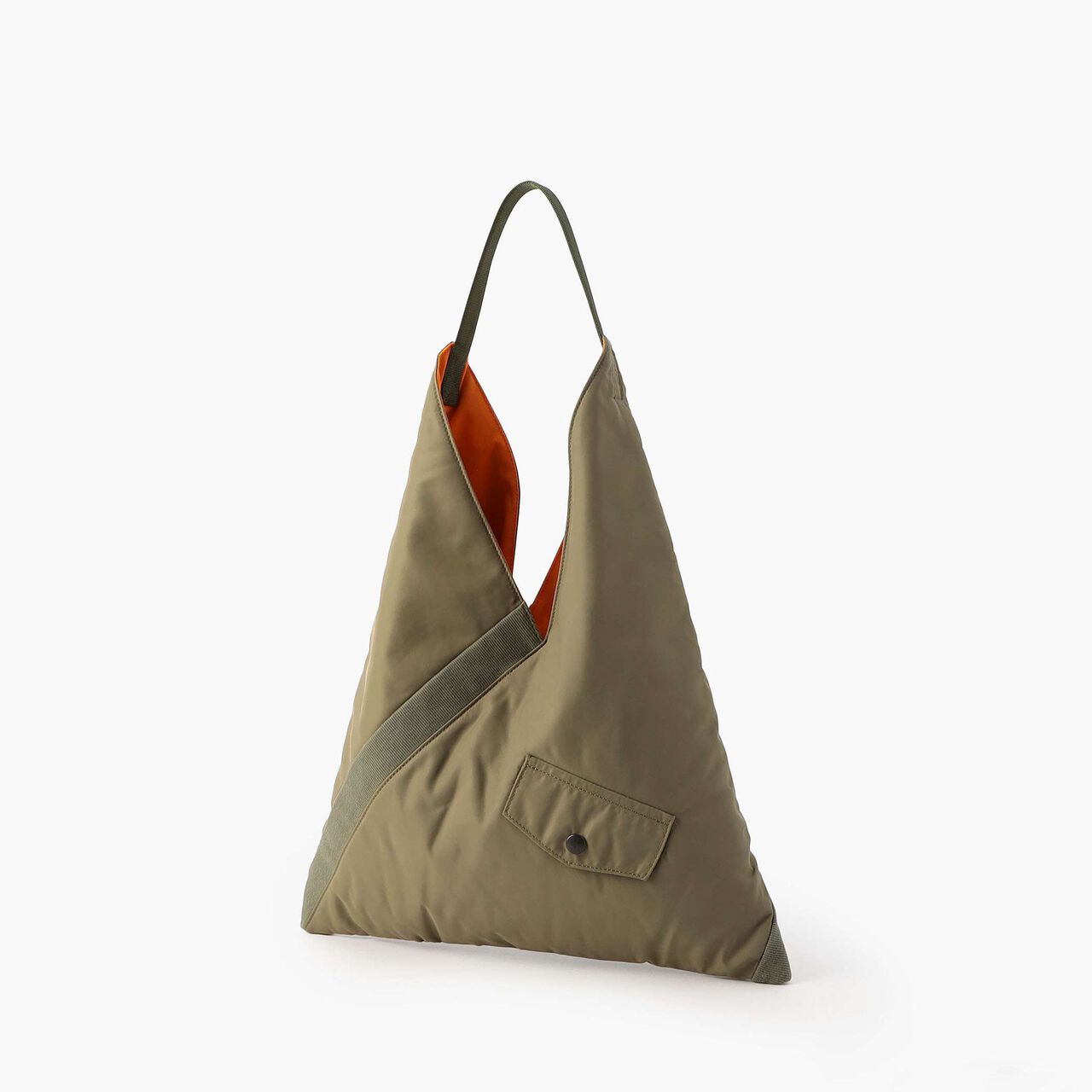 Introducing the one-handle triangle tote inspired by the MA-1 jacket. embodying the essence of BRIEFING. This M size is the most versatile among the three available sizes. offering exceptional usability.