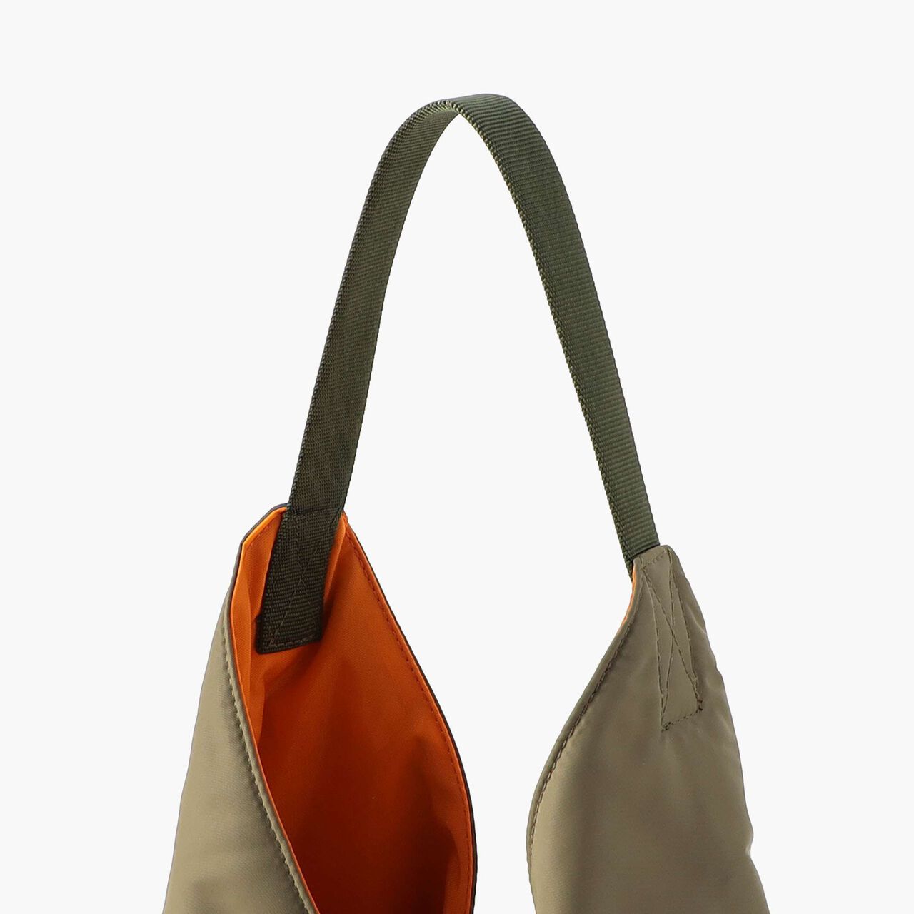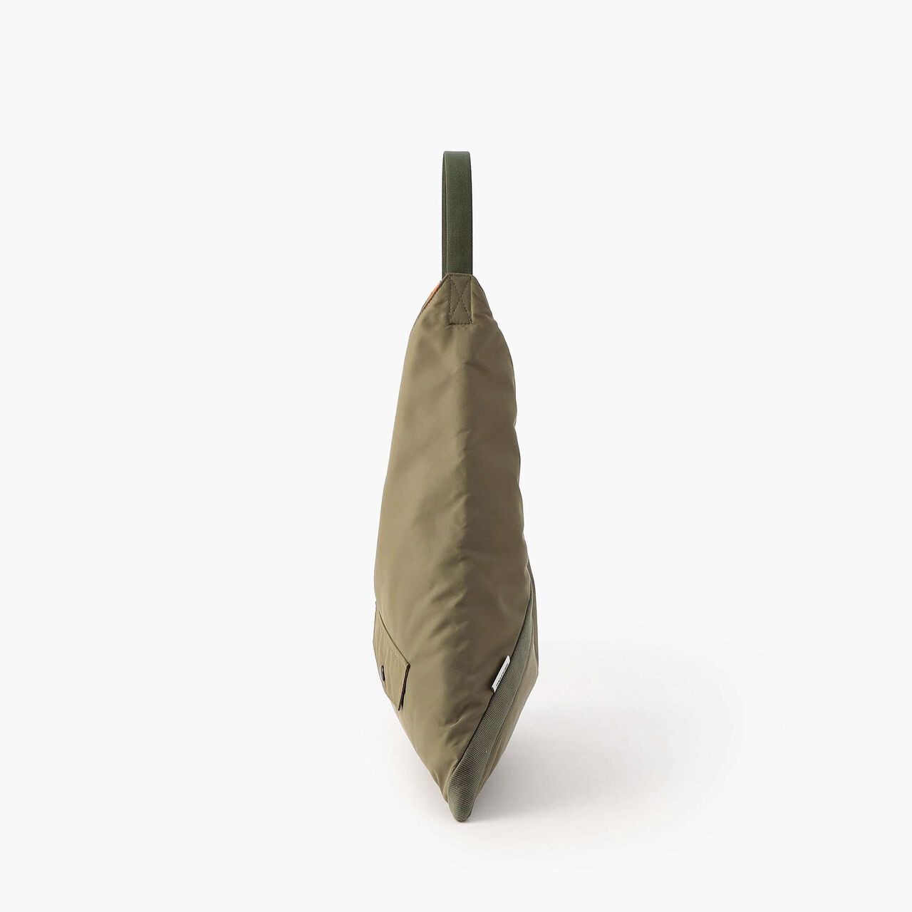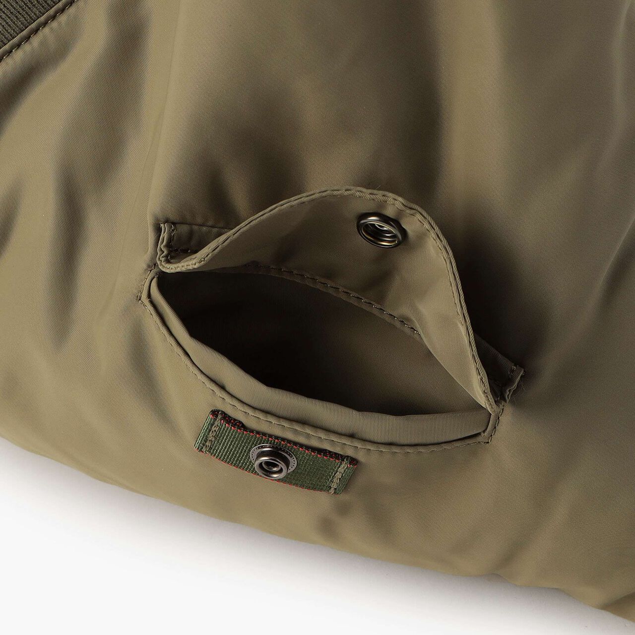 Introducing the one-handle triangle tote inspired by the MA-1 jacket. embodying the essence of BRIEFING. This M size is the most versatile among the three available sizes. offering exceptional usability.