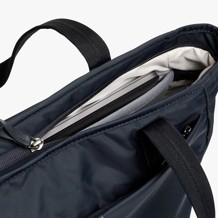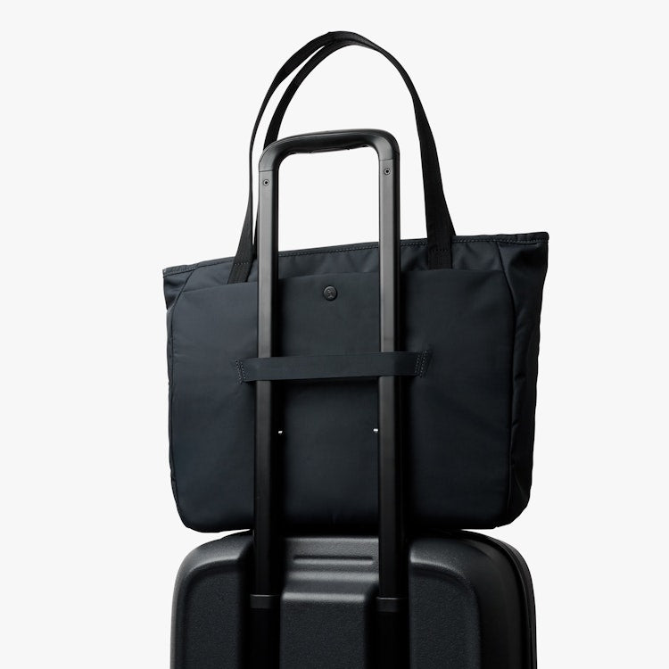 Travel in mindThe trolley pass-through slides onto your suitcase handle while you navigate the terminal. And the tote’s triangular profile helps it fit under your arm down the plane aisle.