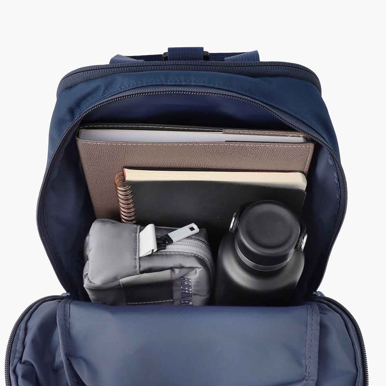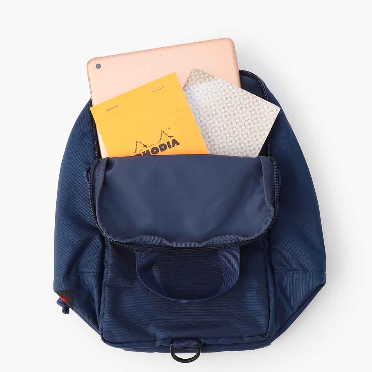 ・The storage compartments are divided into three sections: front pocket. main storage. and back pocket. allowing for organized storage by category.