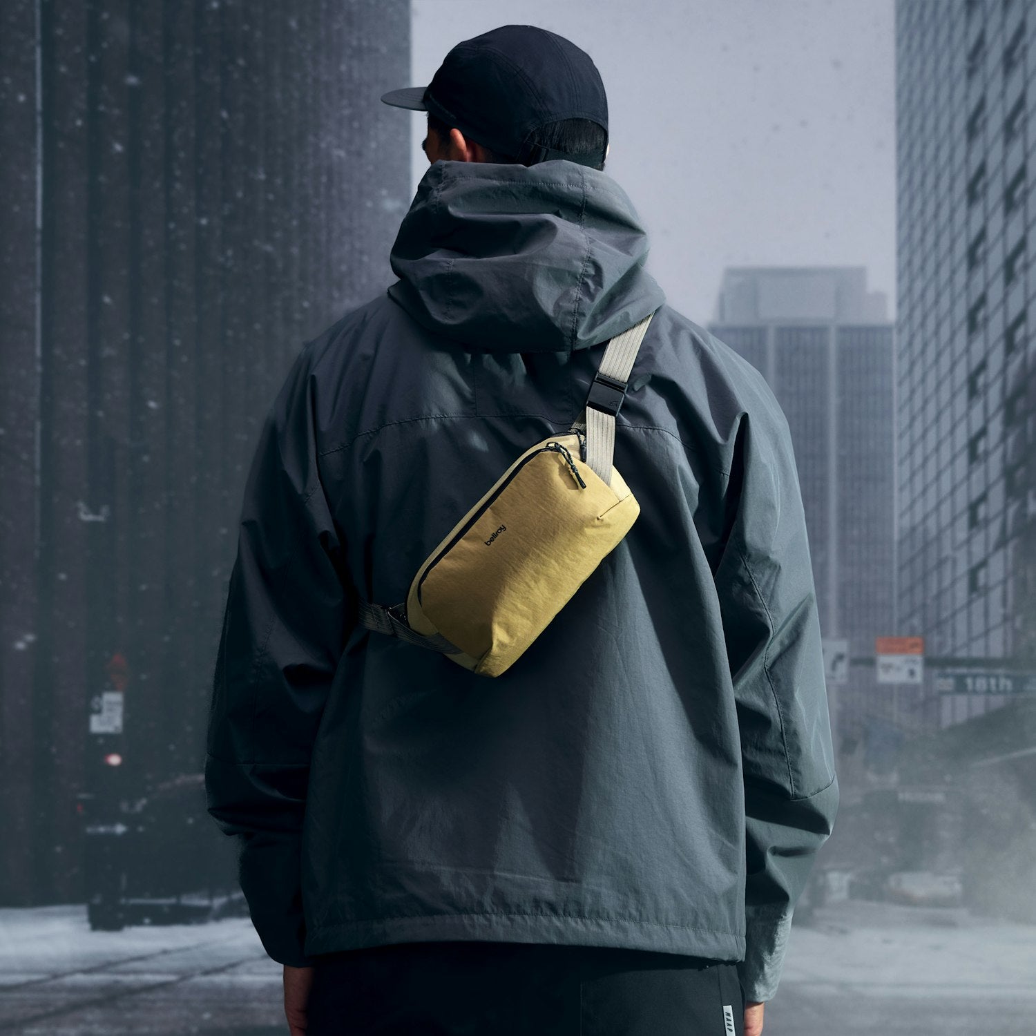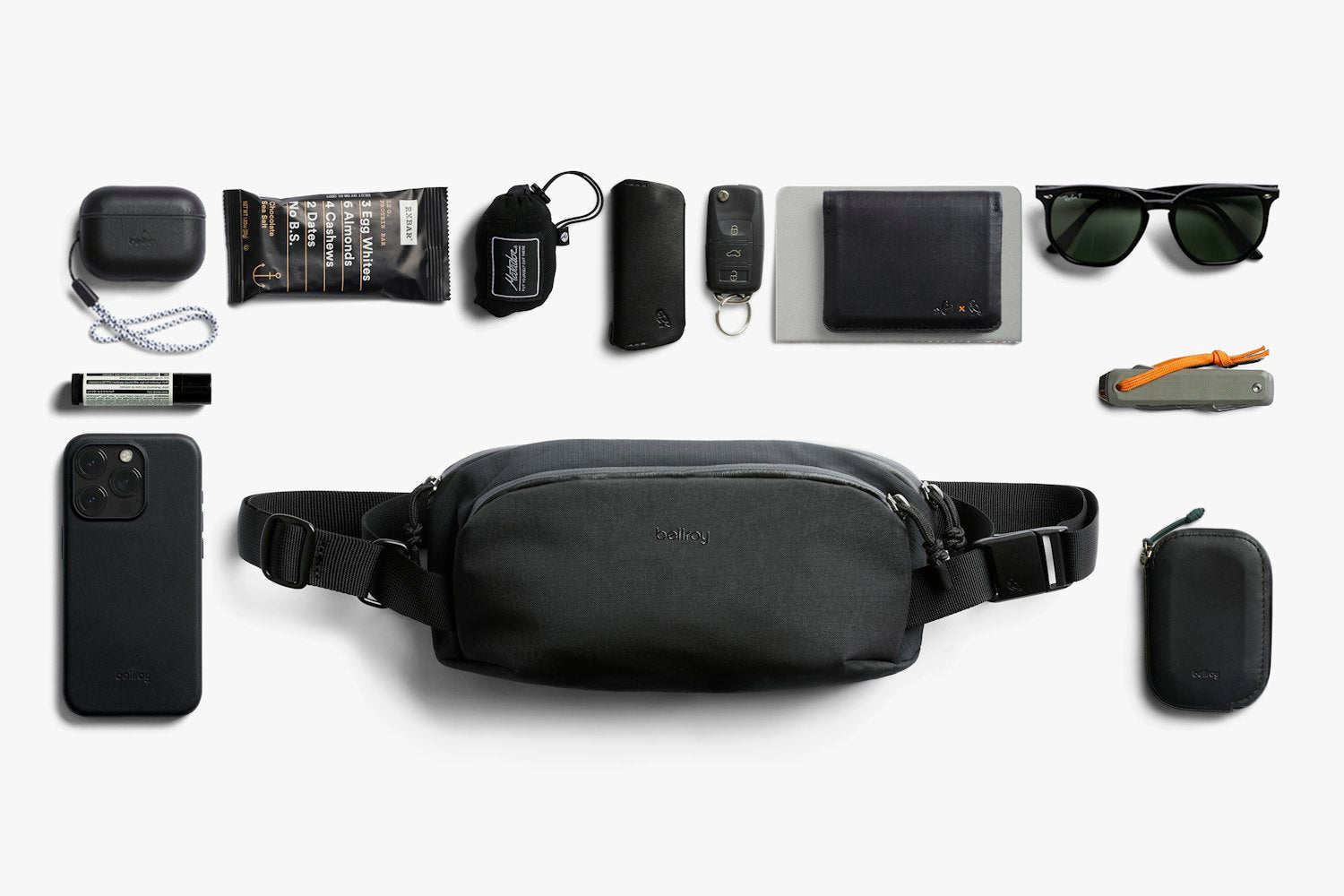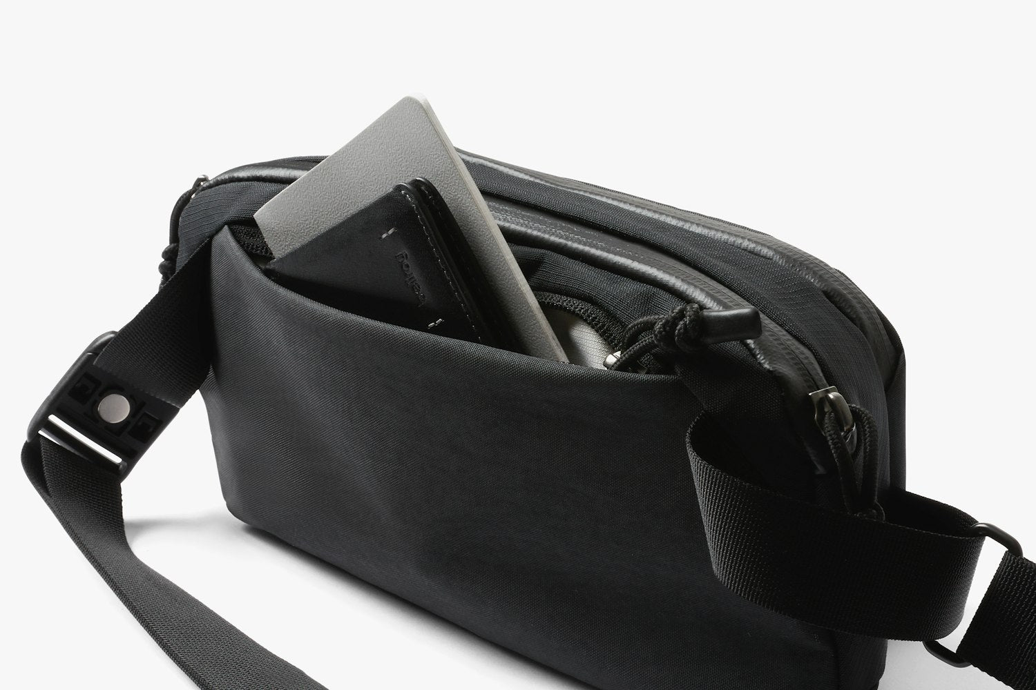 We designed the layout and access of this sling around the objects you carry every day – phone. keys. earbuds – to keep them organized and handy. but out of the way.