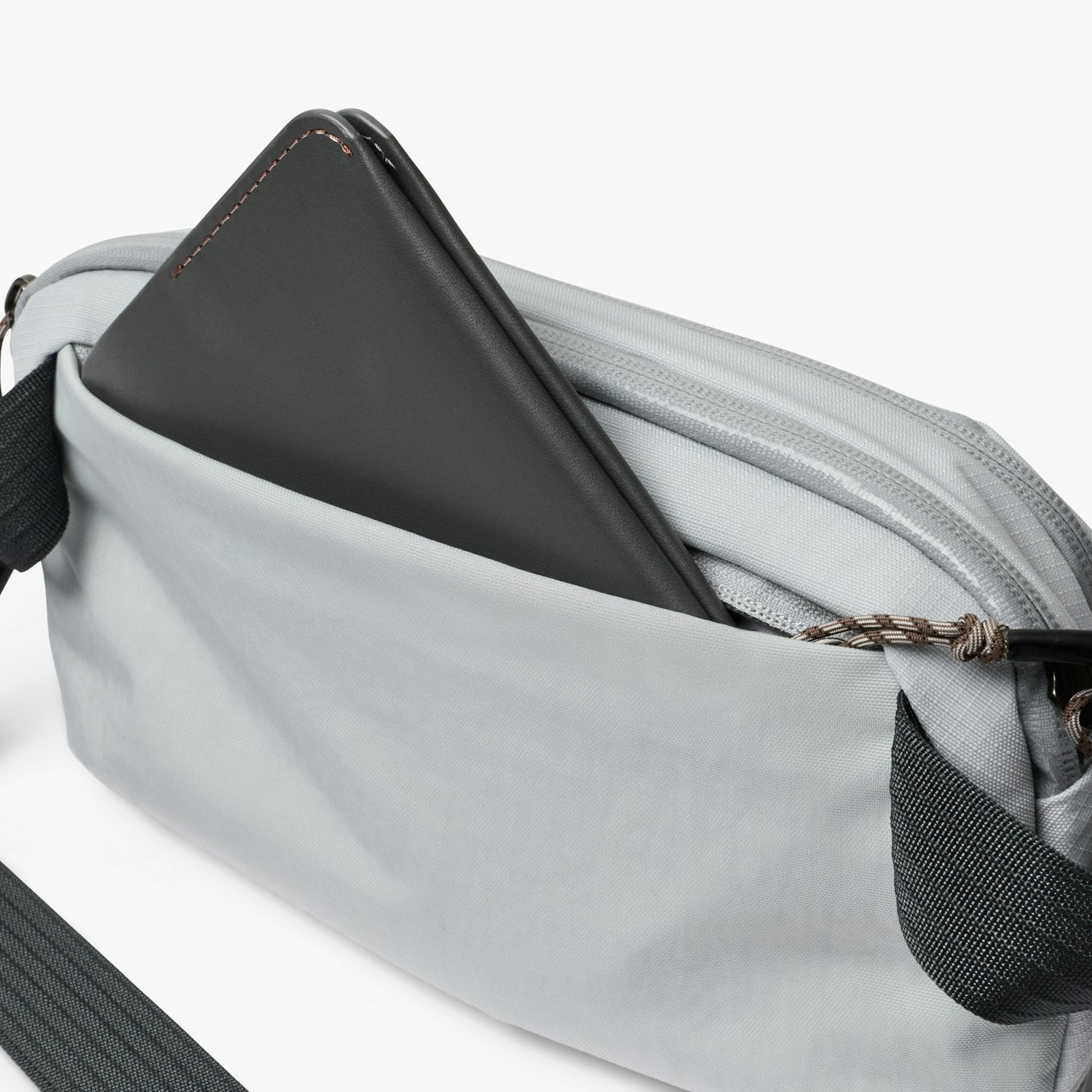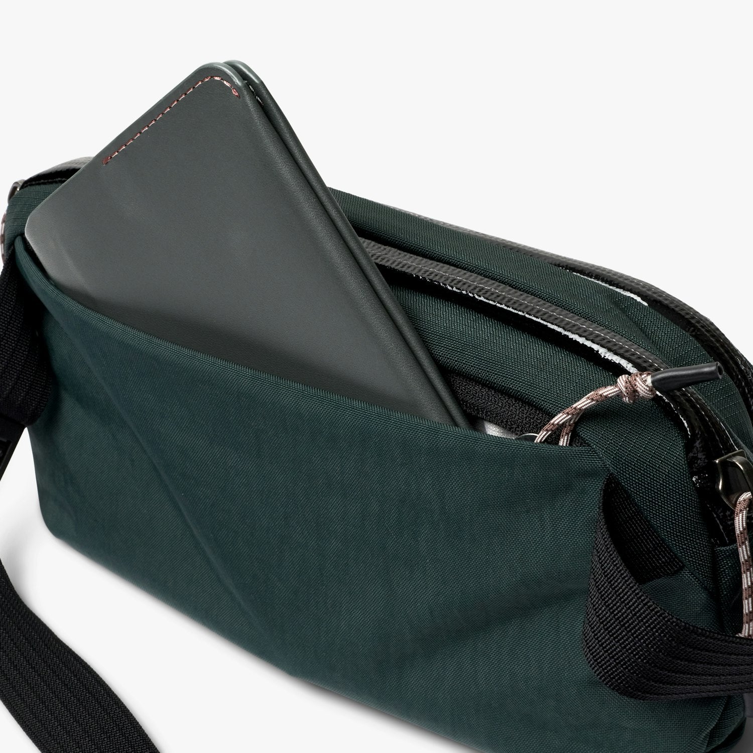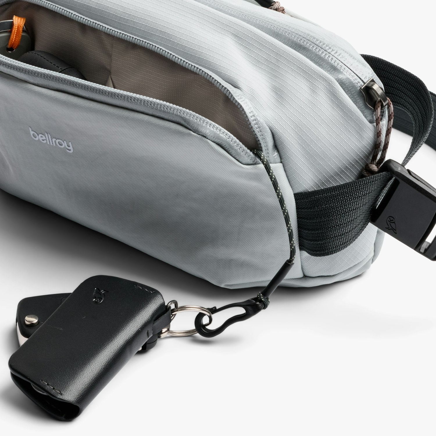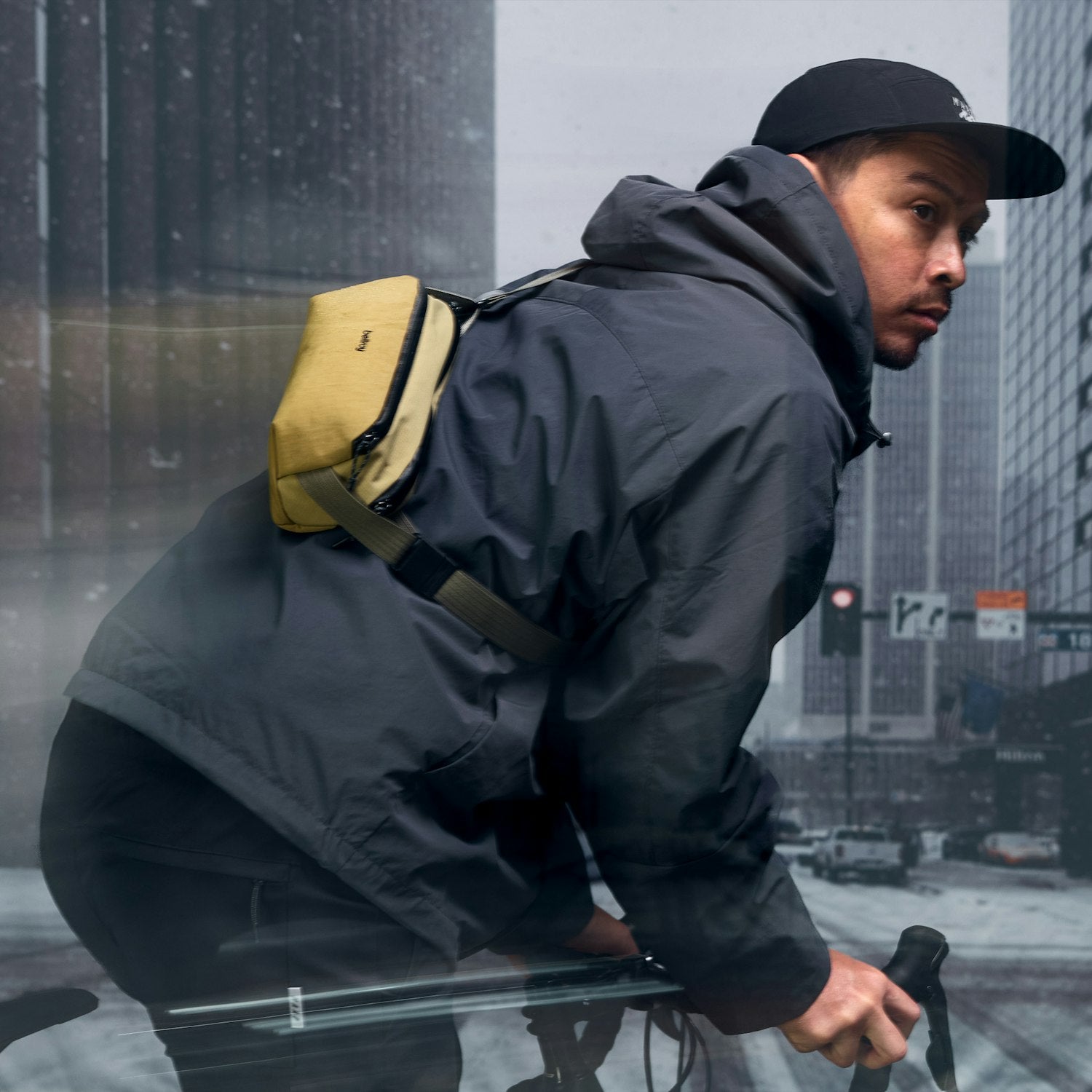 We designed the layout and access of this sling around the objects you carry every day – phone. keys. earbuds – to keep them organized and handy. but out of the way.