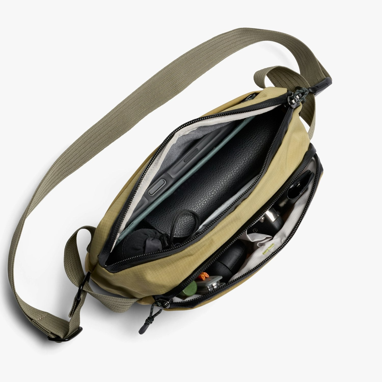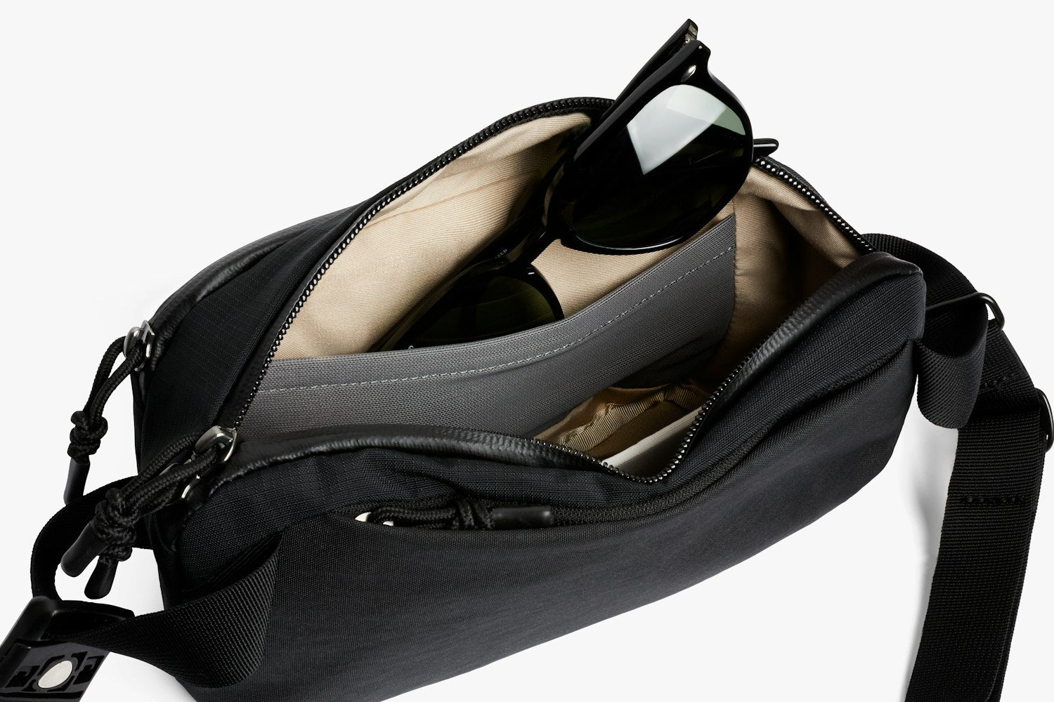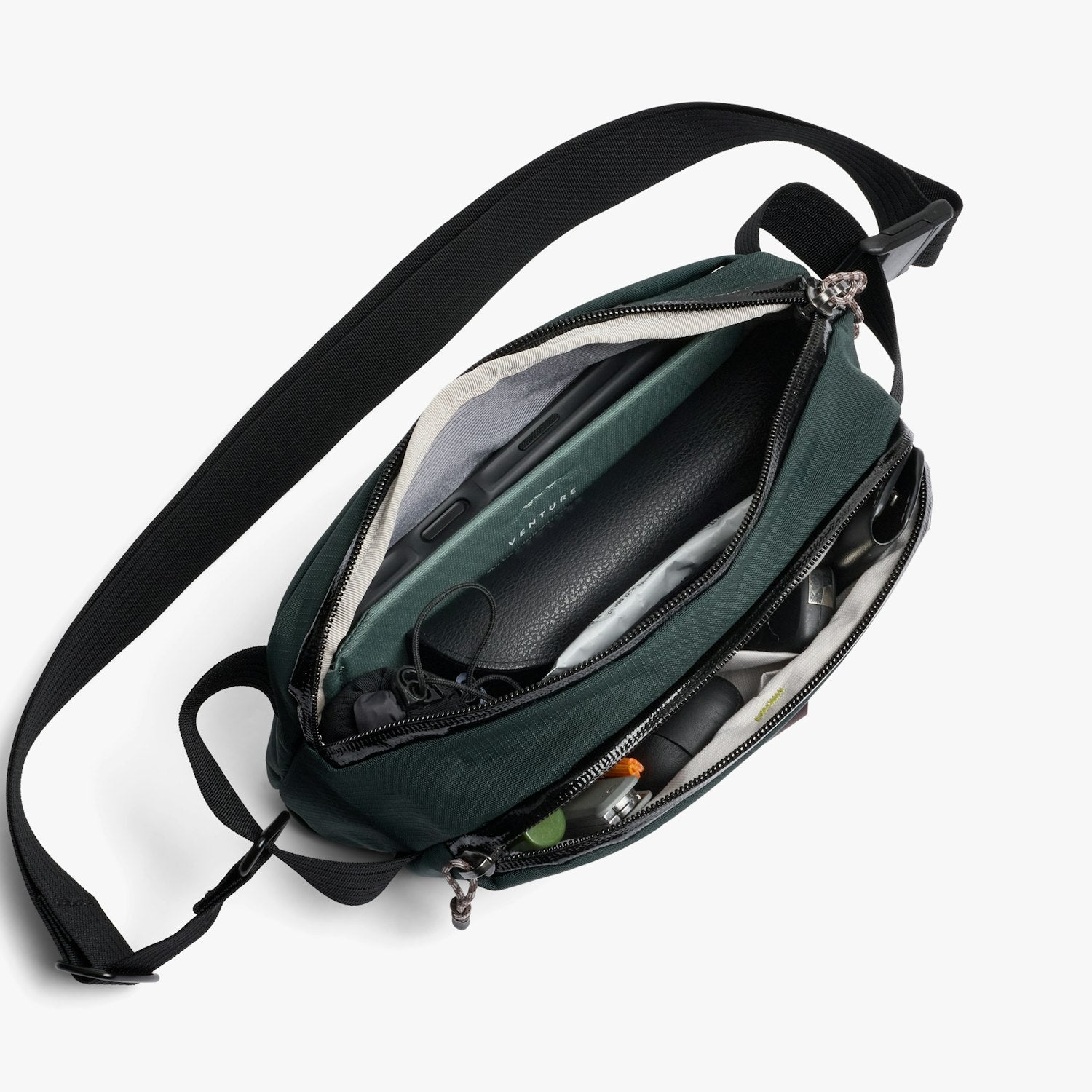 Inspired by our Venture Ready Pack. the front pocket of this sling has an internal divider that helps keep small gear organized and accessible.
