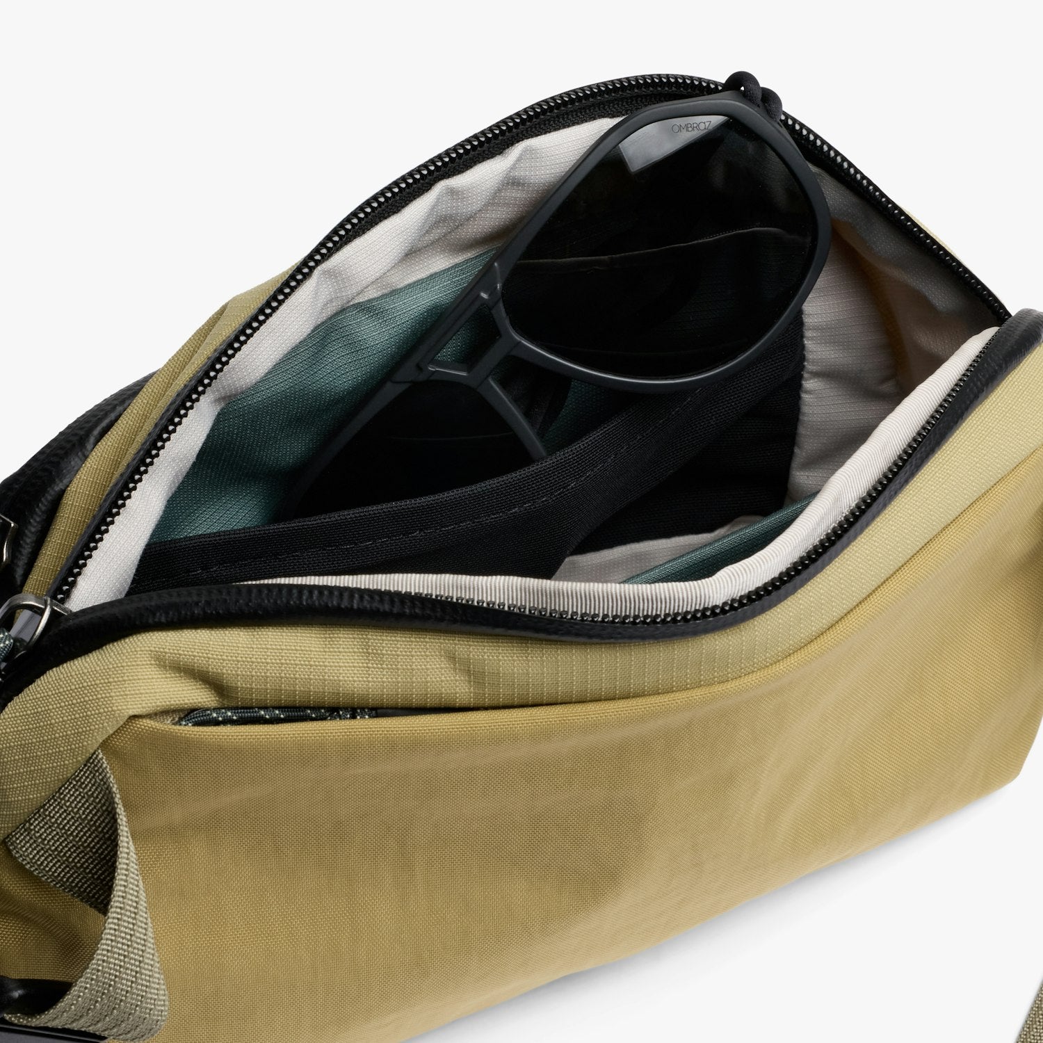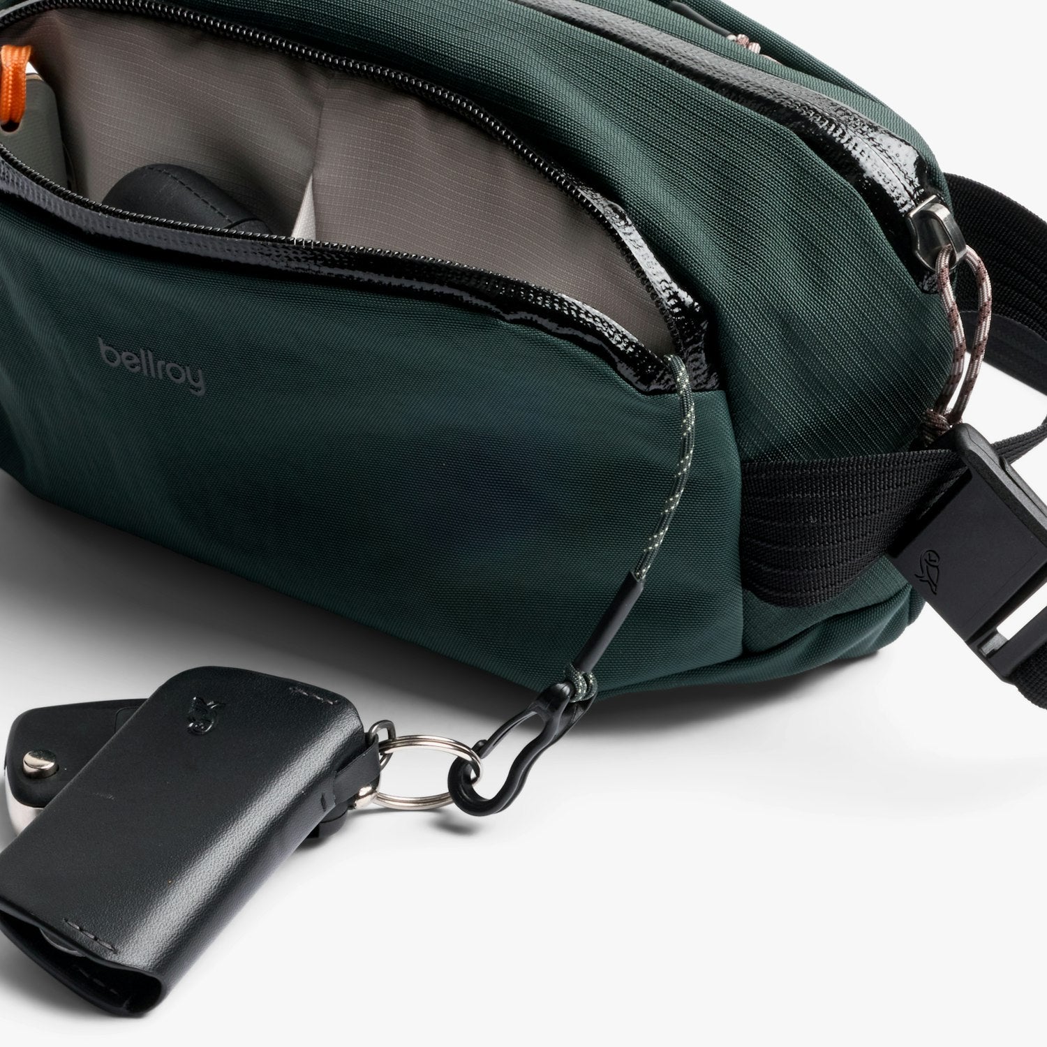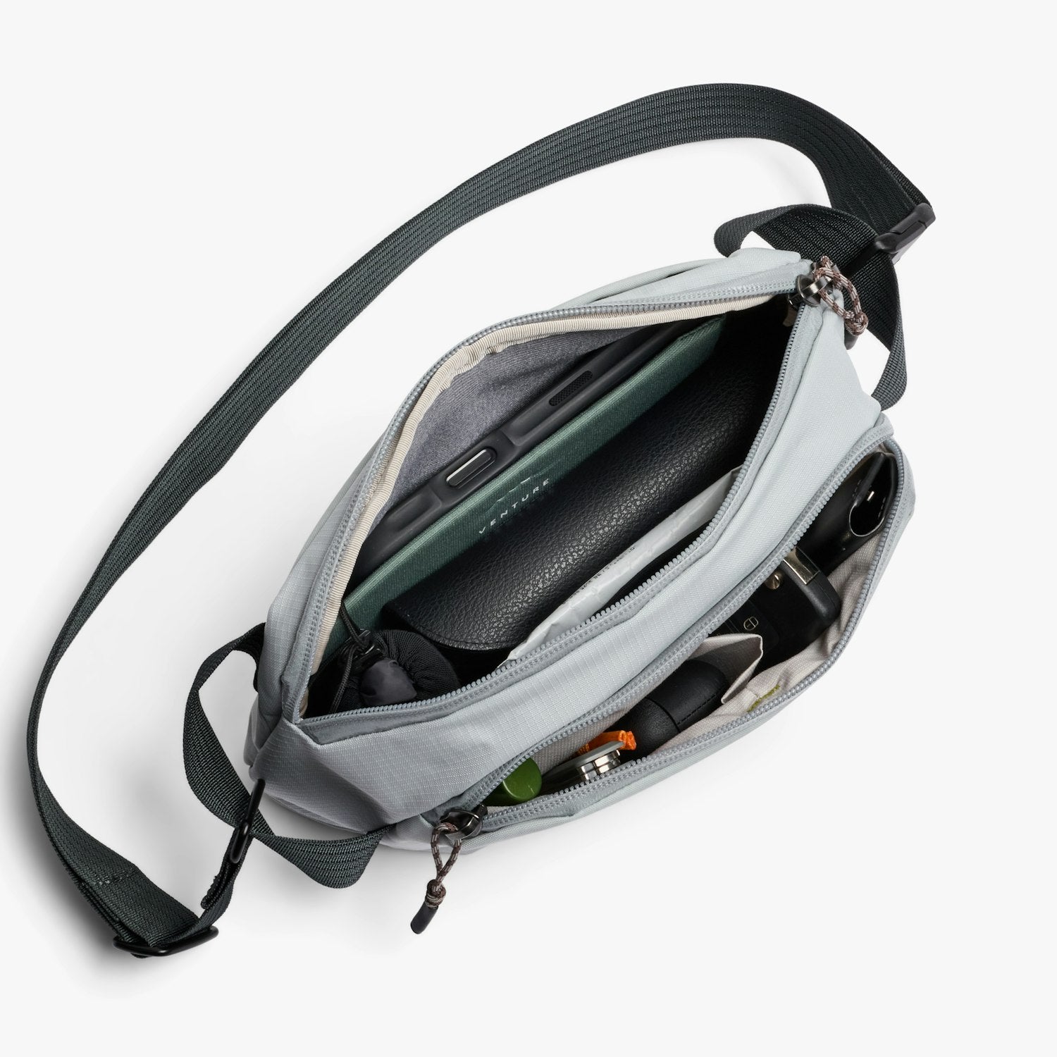 Inspired by our Venture Ready Pack. the front pocket of this sling has an internal divider that helps keep small gear organized and accessible.
