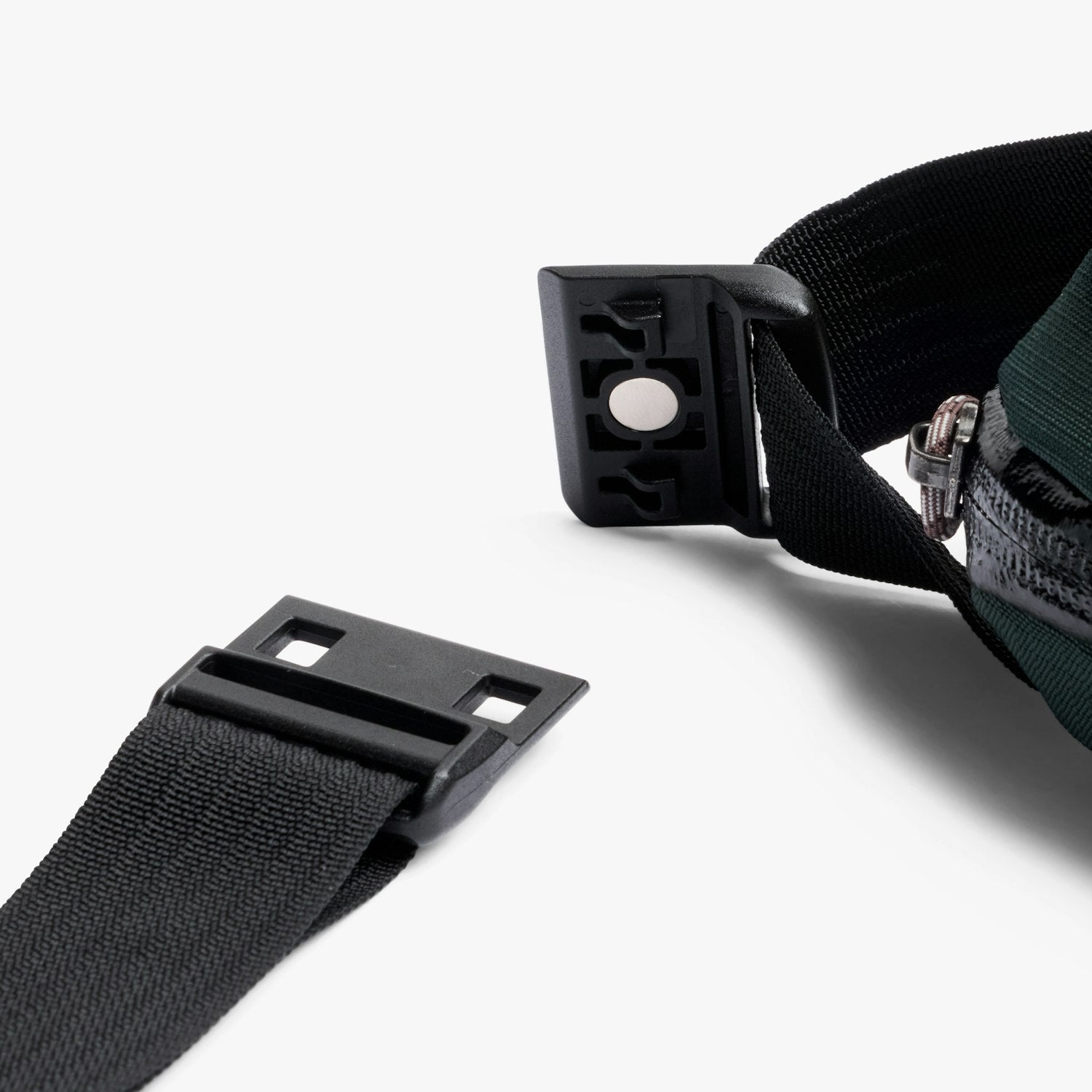 A strong. one-handed magnetic clasp on the strap lets you secure the bag in a snap.