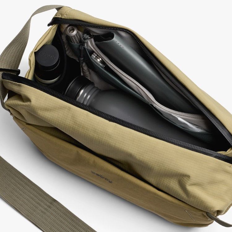 The innovative zipper opens from both ends. creating an ultra wide opening that lets you see and grab everything in your sling. without rummaging.