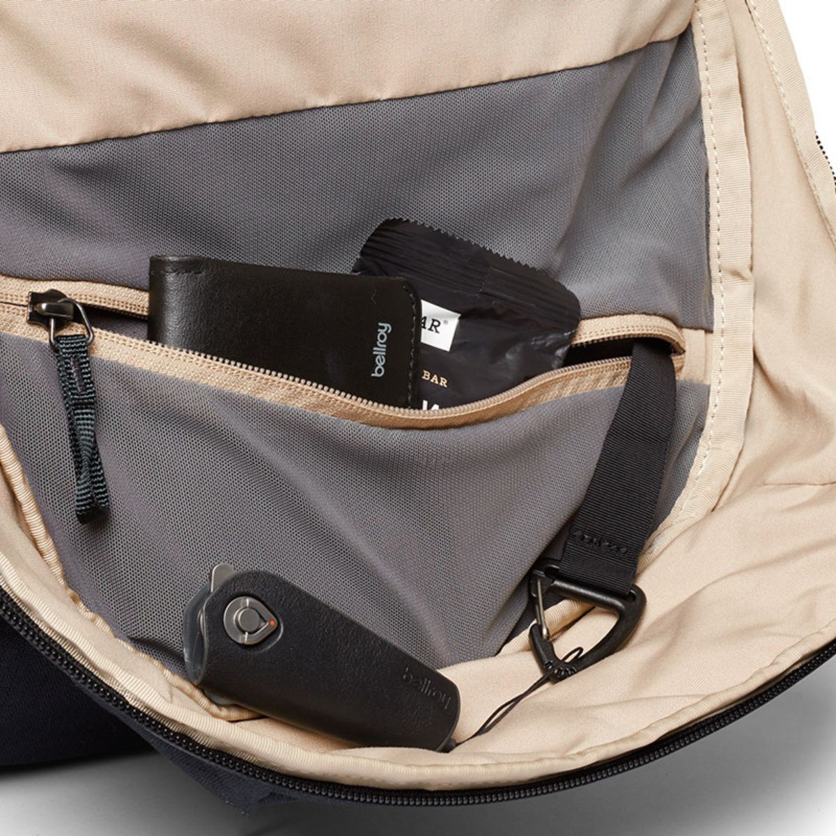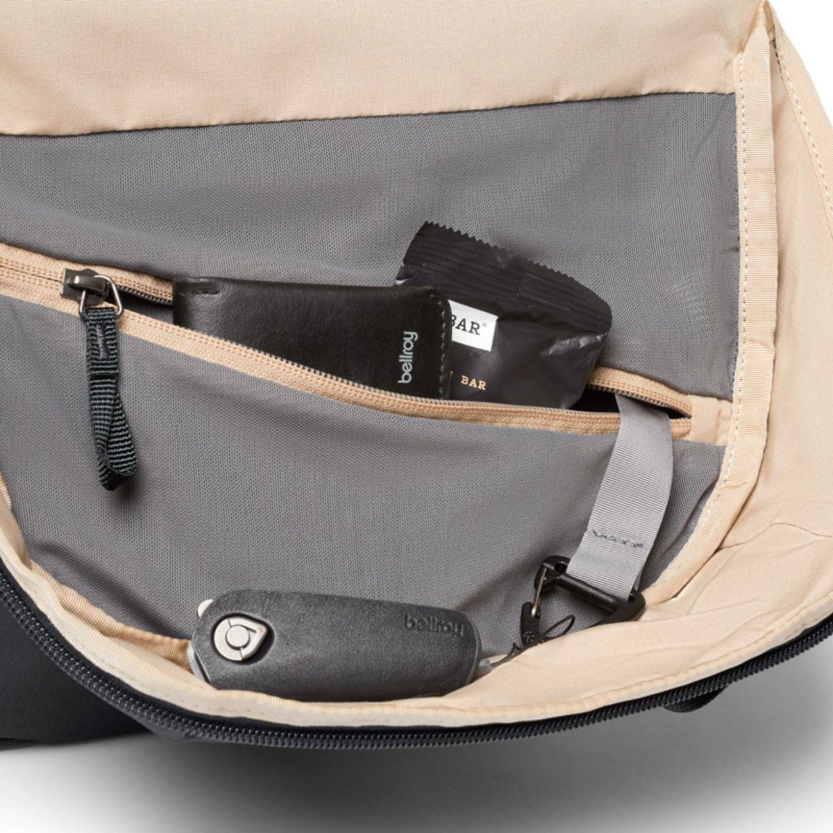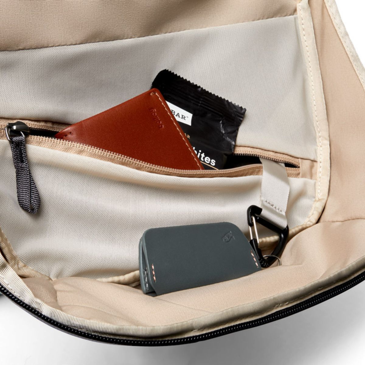 We angled the zipper on this pocket so that. whether the front flap is up or down. you can unzip it without things falling out. Because there’s no detail too small.