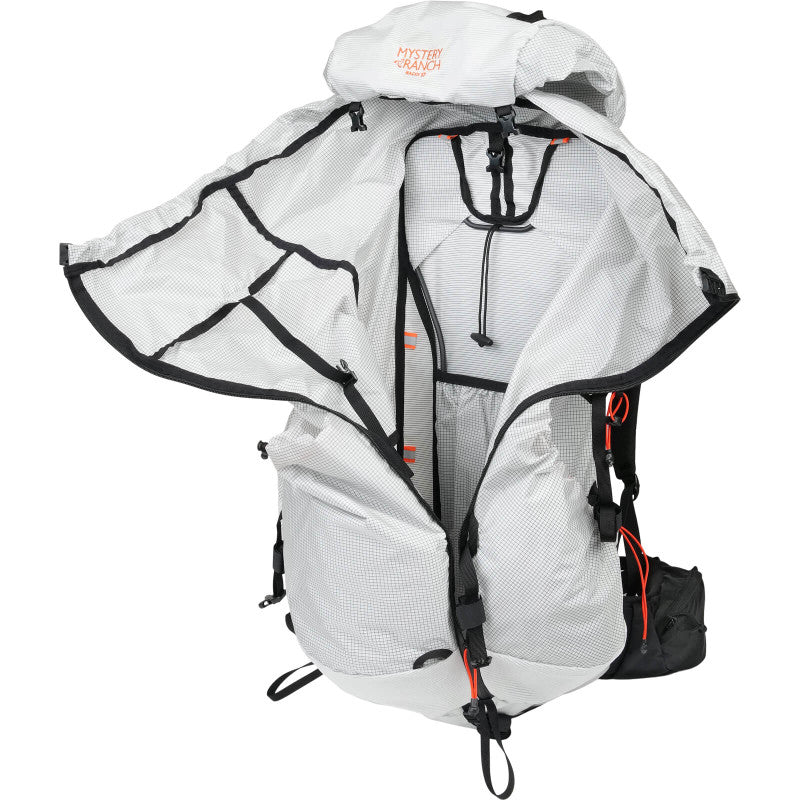 The RADIX 57 is the MYSTERY RANCH solution for a lightweight pack that does not sacrifice the comfort or the load bearing capabilities that we are well known for. This super technical 57-liter pack is built with lightweight Ultra-PE Birdseye and recycled Robic Ripstop fabric. It is small. breathable. and fast while offering plenty of storage features while taking the edge off multiple-day ascents and long stretches of through-hikes without compromising toughness. The removable frame and lid can adjust to meet all your ounce and gram needs and gives you the option of how you want to carry those numbers. The versatile harnessing comes in men’s and women’s sizing for optimal comfort and fit for endurance while crushing hundreds of miles of trail.