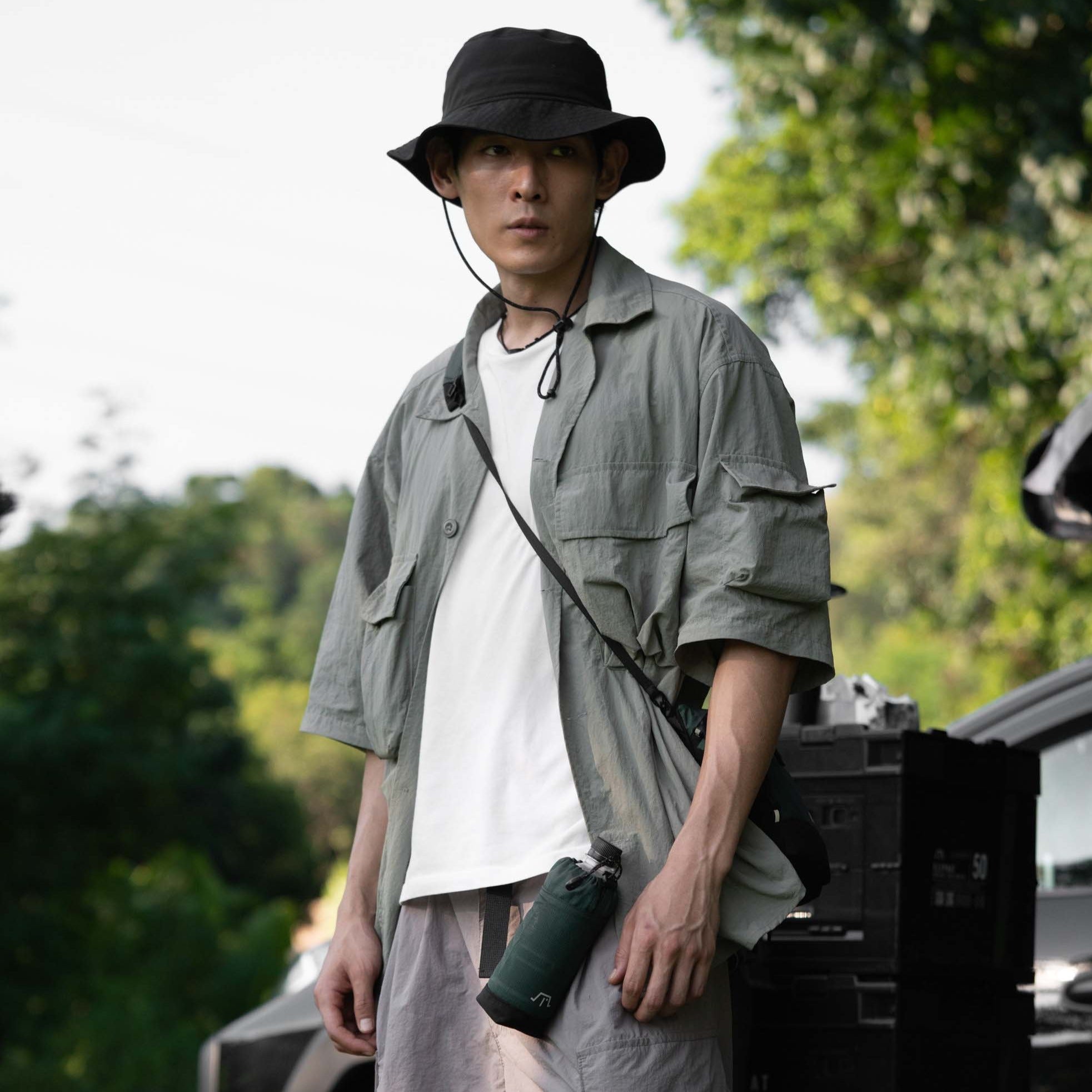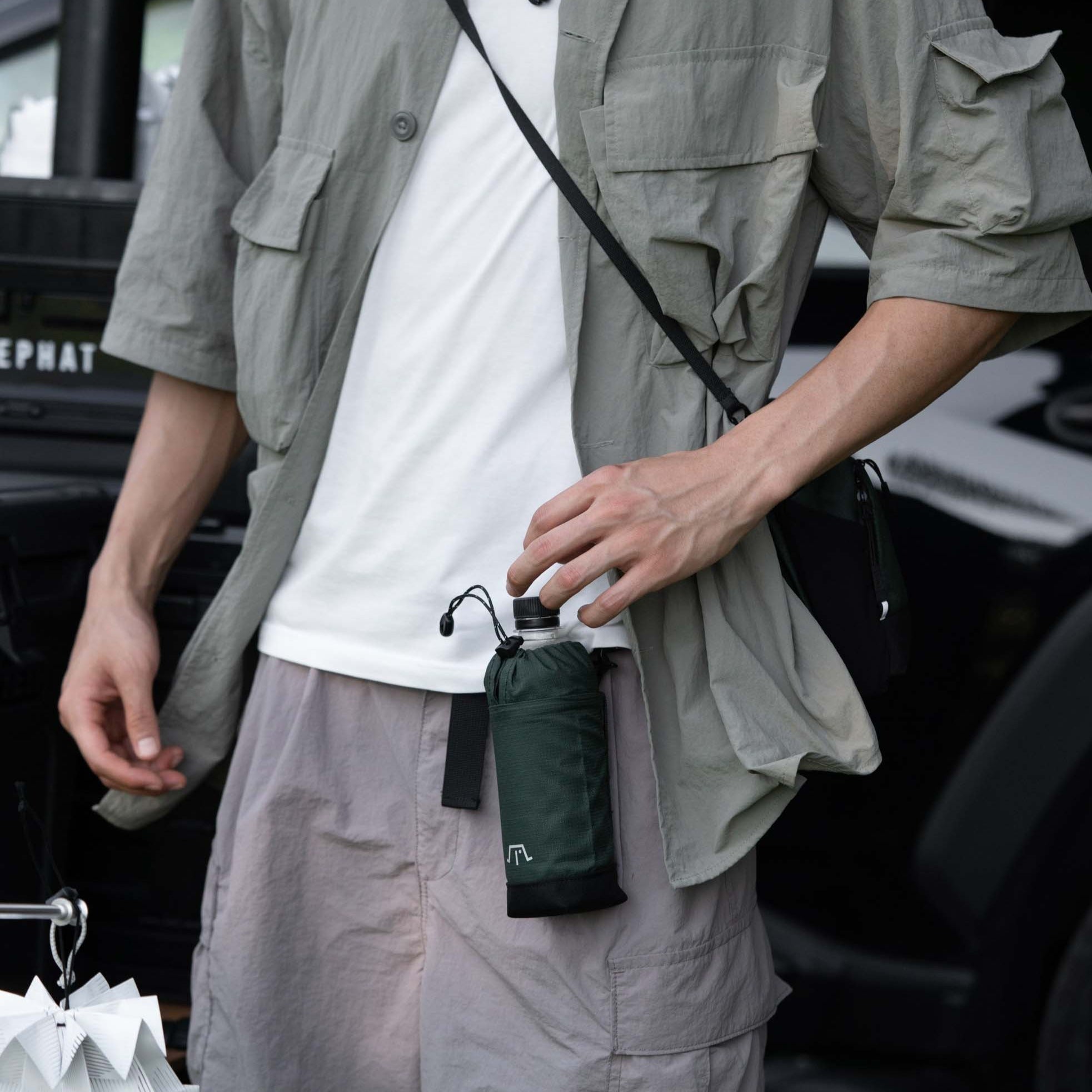 Bring your own bottle bag is thoughtfully designed for water bottle. It could work on its own as a bottle keeper on your pants belt loop or you can attach on Zeta-0.5 to hang it on your beltloop less pants.
